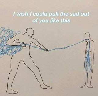 I am not sure I can even put this time to words or if my thoughts and feelings are even ok. I am tired of everyone saying how we should be grateful for this time.This time of social distancing, and staying at home. There is no school, no work, no stores that are open. There is a lot of isolation, more than even I like. As I sit here with an elephant on my chest and a snake around my throat, and my stomach in knots, this time of uncertainty is terrible awful for people like me. I am not grateful. I do not see the silver lining. I understand why we are having to do this, but in no way does that make it any easier. That is more than hard for me, because I am always grateful , I can see good in almost anything. But this is taking me away from everything that makes me feel whole, that makes me feel like a real person. As I sit here, the anger is boiling, the tears want to flow and I want to scream. The kind of scream that shatters glass and reverberates in your brain. This time for me is more than hard as we are all ordered to sty home and flatten that curve. I understand the need to stay home, to be safe but for my heart this is an awful terrible thing. For me there is a feeling of being trapped and there is nothing I hate more. I have no space for me no privacy no time away to just breathe. I feel like for me there is no outlet, there is no one that is hearing me and that is more than hard. There is no support, I miss the people that I work with that share the things I value the most. There is little sleep, lots of nightmares. My stomach is a mess, the ulcers bother me almost every day. There are all these things that want to get out of my head, but there is just not an outlet for them to be heard and listened to within these 4 walls. I stay in my room, trying to find a little normal, a little sense that everything is going to be OK and that someday soon things are going to go back to normal. There is a sad that I can't even explain but with all that I am I wish that there was a way to pull it all out just like in this picture. Just get rid of it all once and for good. Being sad doesn't work like that, sometimes I wish that it did. I am sitting here waiting for a zoom with a student and I hear the cardinals outside and I think, you know I totally should be happy. I have everything that I need , my bills are all paid. I still have my job. We have food to eat and electricity for the lights. All of those outside needs are met. My children are healthy and safe, my mother as stressful as that is: she is safe and sound in my house. There is that thing in my bones that is uneasy, that is agitated over every little thing. The few things that I could always count on, are gone for the time being but gone none the less. My inside needs; that is where my problem lies. That is where I struggle. The things that I hold tight , the thing that are most dear are the things that are weighing on my heart. I am trying to do the right things, I am trying desperately hard not to be pesky, right now I kind of feel like a fish out of water and I am flailing trying to make sense of all the things going on around me, and to find some kind of normalcy. I think of that poor fish gasping for air and that is kind of what I feel like at this point. I am just gasping, looking for water but wondering if there is really any to be had.........